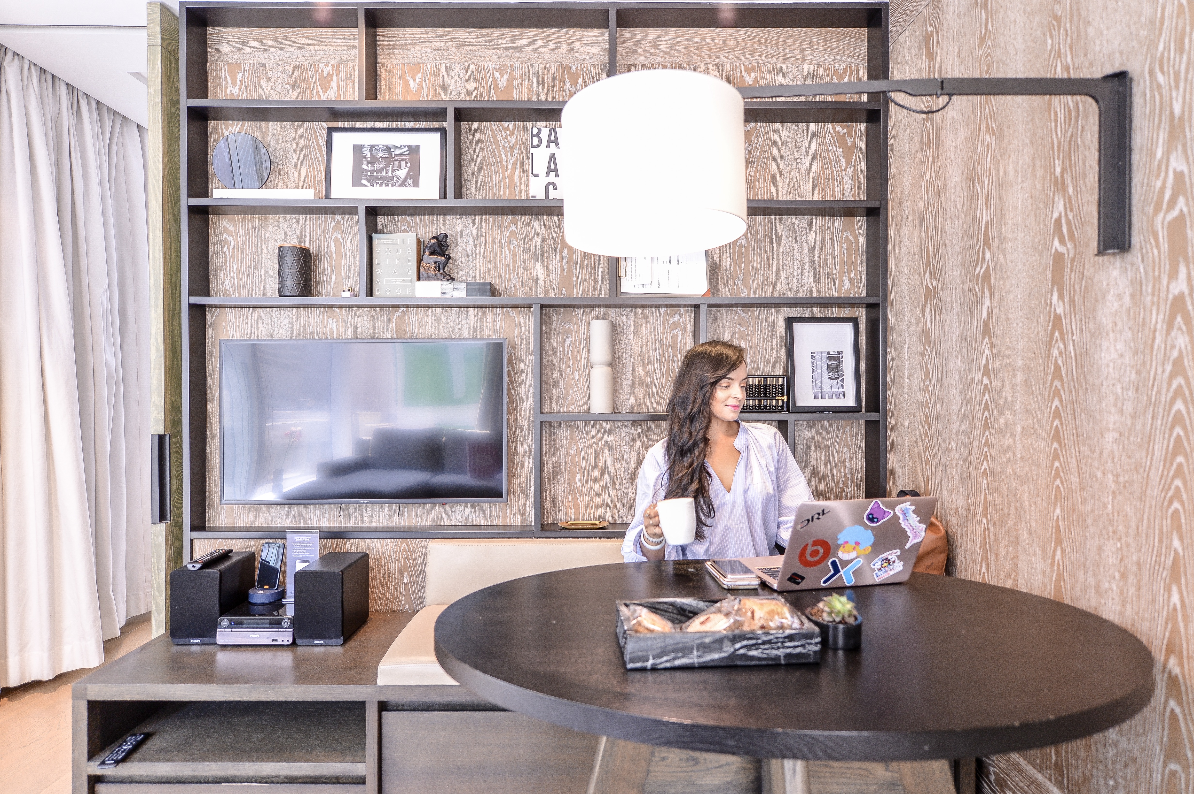 I specifically picked this hotel in Hong Kong because I wanted to take pictures in the floor to ceiling window rooms. To my surprise, the higher rooms with better views were unavailable. Nonetheless, the hotel is incredibly beautifully decorated with a gorgeous modern design that makes this small hotel room look as if it’s massive. The two room apartment comes with a full kitchen, living room, bedroom, and shower. The shower itself is embedded into the ceiling that makes it seem like the water is rainwater. In person, the apartment is quite small costing about $350 a night. However, it is a must at least for 2 nights while you stay in Hong Kong.
